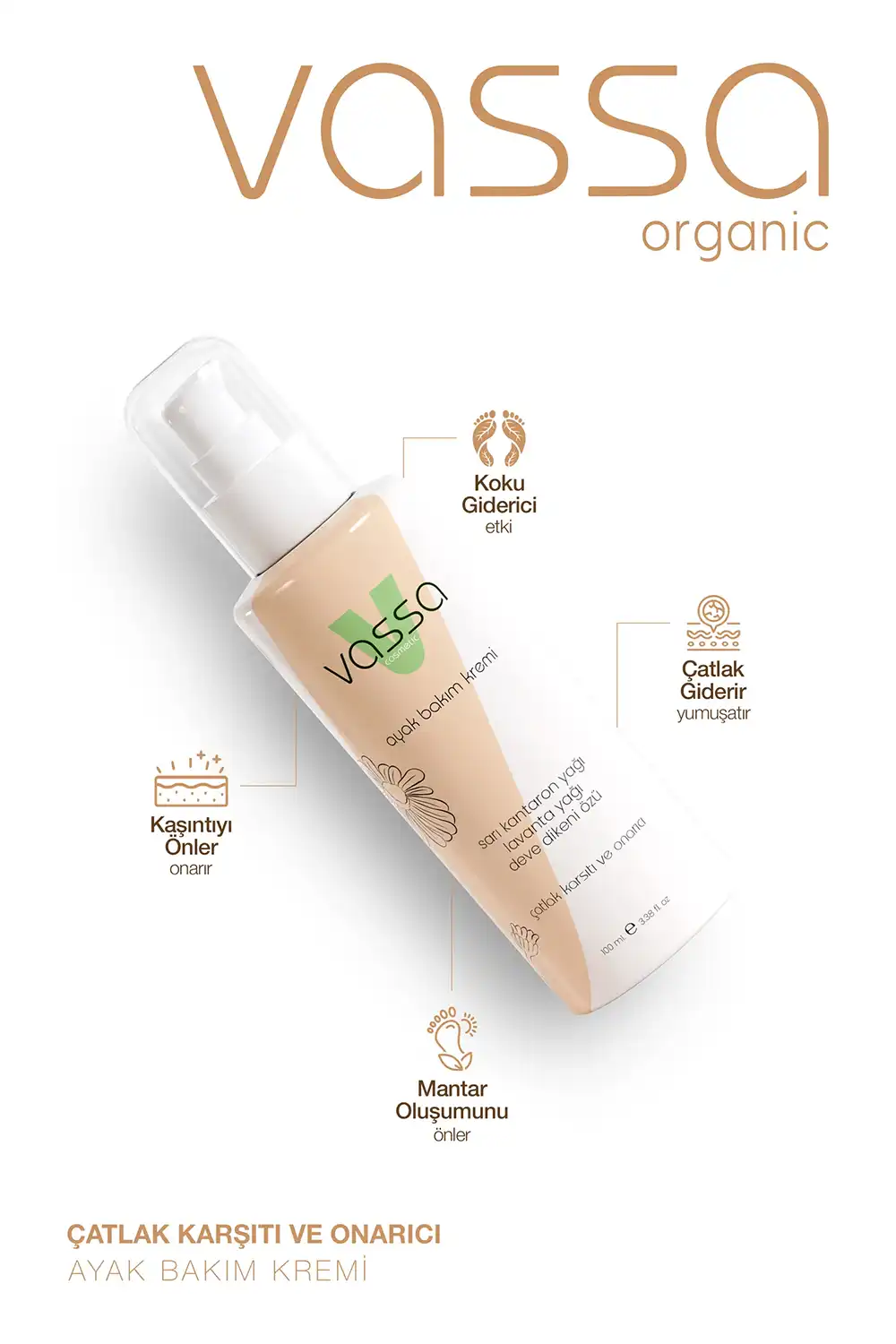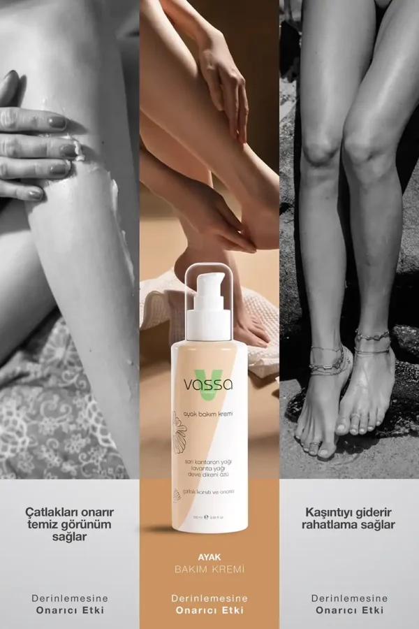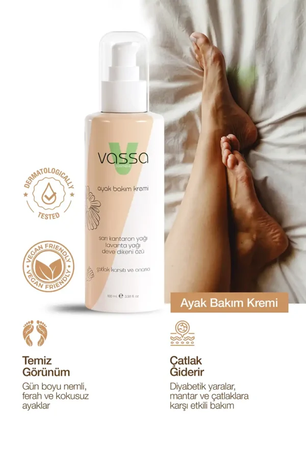 Vassa Ayak Bakım Kremi, diyabetik ayaklarda sık görülen kuruluk, sertleşme, çatlak görünümü ve hassasiyet düşünülerek geliştirilmiş bir bakım kremidir.